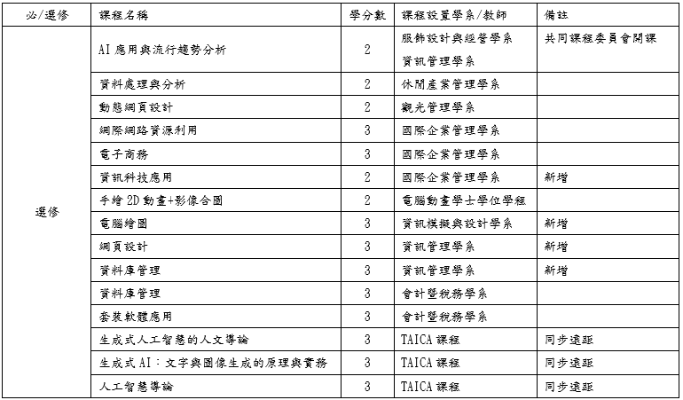 學程應修學分總數為6學分,所屬學系課程參採至多4學分,相關學分數如有其他特別規定者,從其規定。